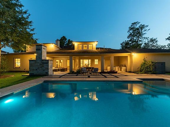 Positioned on a full acre along a quiet cul-de-sac, this exquisite contemporary farmhouse rests in a storybook setting w/beautiful trees. Step inside to gleaming hardwoods, soaring ceilings, & an elegant spiral staircase. Master craftsmanship throughout home features clean lines, neutral paint pallets, modern lighting, elegant ceilings, & walls of windows offering views of nature from every room. The kitchen will satisfy the pickiest of chefs & boasts large eat-in island, custom cabinetry, vegetable sink, pot filler, two fridges, appliance cabinet, sleek granite counters, double ovens, butler's pantry, & HUGE walk-in pantry. The second living area downstairs is the perfect playroom providing access to two secondary ensuite bedrooms. An entertainers dream! Enjoy movie night at home in the formal media w/projector & screen. Multiple game rooms too! Surround sound softly plays inside & out! So, bring the party to your backyard oasis. Sparkling pool, outdoor kitchen, fireplace, & more!