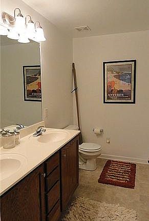1 story, Large Bonus Room, side entry garage, front covered porch, back covered deck, fenced in backyard, large Great Room, Large closets, Whirlpool tub in Master, Master Suite seperate from other 2 bed, 3 COMMUNITY POOLS, sidewalks & playground!