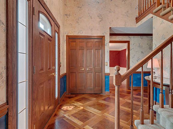 Classic style & elegant exterior welcomes you to this brick 4 bedroom home offering 3800+ finished sq. ft. of quality finishes & workmanship. Gorgeous Chestnut wood floors made from Amish barn beams flow from the large entryway thru the kitchen. Excellent for high-traffic areas, Chestnut floors have a warm multi-hued tone that work w/every color scheme. Den or home office has gorgeous wood raised wainscoting. Pocket door between den & living room for privacy. Special occasions are a delight in the formal dining room w/raised wainscoting panels & specialty tiled floor. The huge eat-in kitchen is furnished w/an abundance of cabinetry, pendant lighting over an island w/breakfast bar for quick snacks, a planning desk or coffee station, a pantry, a window over the double stone sink, stone countertops & backsplash, double ovens new in 2016 electric/convection, plus nice-sized casual dining area. All appliances stay. French Doors open up to the expansive family room w/custom tiled floor, bayed window & brick fireplace flanked by built-ins. Relax in the Sunroom surrounded by sliding doors, tiled flooring, plus knotty pine tongue in groove walls & vaulted ceiling. Separate laundry room has overhead cabinetry, tiled flooring & handy utility sink. Upstairs the master suite has an ensuite bath equipped w/twin sink vanity, jetted corner tub, separate steam shower, & deep walk-in closet that opens into floored attic above garage. New shower flooring in master & new fan. Three more roomy bedrooms & 2nd full bath w/twin sink vanity complete this floor. The finished basement is perfect for entertaining complete w/built-ins, a wine cellar w/travertine stone tile, plus a cedar closet. Split 3 car garage adds storage & flexibility, plus a wide parking pad add ease for turnaround & extra parking. Set on a big .52 acre lot, the backyard has plenty of mature landscaping for a private oasis, a stamped patio, plus the at home chef will appreciate an established garden. Updated in 2012: garage door, roof, siding & shutters, gutters, Marvin doors all exterior, Marvin windows all, plus storm doors. Other detail include all bathroom vanities are comfort height, crown molding, pocket doors, ceiling fans in all 4 bedrooms & family room, seamless blinds & shutter, Invisible fence all around house, motion lights at driveway & back, stamped concrete walkways & front stoop, anti-gravity battery back-up sump pump, irrigation system in front w/ability to add extend to the backyard.