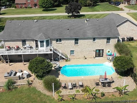 8 LEGIT bedrooms, Nearly 3 ACRES, POOL.....This expansive Floyds Knobs beauty is over 5,000 Sq ft with 8 bedrooms and 4 and half baths and on an incredible lot. Minutes from grocery, dining, banks, hardware, pharmacy, expressway and more, this sprawling ranch is the ultimate entertainers dream! With over 5000 sq ft, this home offers hardwood flooring on the main level, 5 bedrooms on the main level with an in law suite! The owners suite is large and offers an en suite bath, walk in closet and private access to the deck. Every bedroom is a GOOD SIZE! The lower level is over 2500 sq ft finished for which includes 3 bedrooms, full bath, gaming area, family room, full bath, plumbed for bar and walks out to the INGROUND POOL and patio area that is super private for you and guest to enjoy!