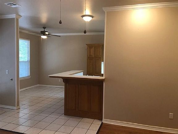 All brick home with split floor plan. NEW faux-wood flooring in living room, NEW carpet in all bedrooms. Large living room has corner fireplace with gas logs and is open to dining space which adjoins kitchen with high counter bar, lots of storage, under-cabinet lighting, etc. Master bathroom has step-in shower plus whirlpool tub, double-sink vanity and 2 walk-in closets. Crown molding, blinds and ceiling fans throughout. Covered front entry, back patio, fenced yard and double enclosed garage. Conveniently located near I-49, offices, medical facilities, shopping & entertainment.