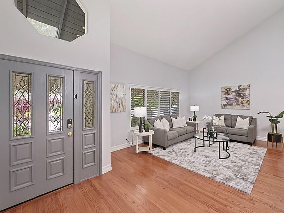 Welcome to 5011 Woodthrush Rd, a beautifully updated home nestled in the heart of Pleasanton’s highly desirable Birdland neighborhood. Inside, you’ll find rich hardwood floors, dual pane windows with plantation shutters, and skylights that flood the home with natural light. The remodeled eat-in kitchen is a true centerpiece, showcasing quartz countertops, stainless steel appliances—including a gas range, refrigerator, and microwave—and a spacious walk-in pantry. The cozy family room features a bay window and gas fireplace, creating the perfect space to unwind. The luxurious primary suite boasts a dual vanity with a marble top, a subway tile shower with frameless glass doors, and a large walk-in closet with additional storage access. Both bathrooms have been tastefully updated with custom tile, stylish fixtures, and modern lighting. Additional highlights include an indoor laundry room with sink and cabinetry, and a finished two-car garage. Step outside to a private backyard complete with newer redwood fencing, a charming arbor, built-in BBQ, and a 6x8 storage shed. Just one block from Pleasanton Sports Park and an easy walk to award-winning schools and shopping—this one checks every box!