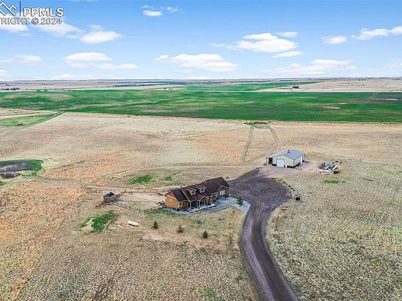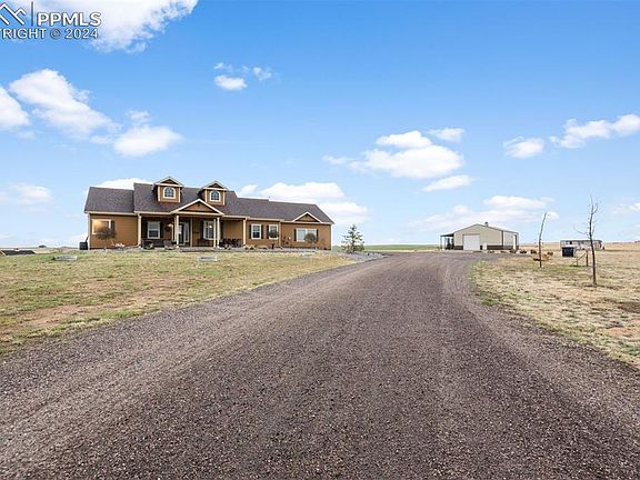 Embrace tranquility ~ Come home to this Stunning 2018 Custom Ranch Home featuring three bedrooms and two full baths with 4,274 Sq ft and a 3 stall attached garage, if thats not enough there is a 40' x 60' OUTBUILDING WITH 14' DOORS that makes a perfect place for car lovers or turn it into a home for all your animals ~ perfect workshop/barn and so much more!! Step inside to this spacious open floor plan with vaulted ceilings and many windows leading out to the beautiful plains as far as the eye can see. Kitchen is equipped with all stainless steel appliances and a gas cook top stove with granite counter tops! The living room with all its windows and gas fireplace will make a cozy retreat in the winter. The primary bedroom with en-suite bath has heated flooring and is conveniently located by the laundry room. Entertainers dream with a large deck off the back of home and a covered front porch. Make your office at home with a flex room upstairs or playroom for the kids. The bright daylight full unfinished walkout basement with great windows and sliding glass doors is ready for your finishing touches. This home offers the ideal balance of serene rural living but still being able to enjoy the city life with convenient access to I-70 and major throughfares. *NO HOA *HIGH SPEED FIBER OPTIC to the home *Newer Water Softner with Water Filtration *Newer Roof *6 frost free hydrants *25 x 45ft Flight Pen that can be used for various animals *One mile off paved roads *30 minutes to DIA, close to many conveniences including restaurants and shopping.