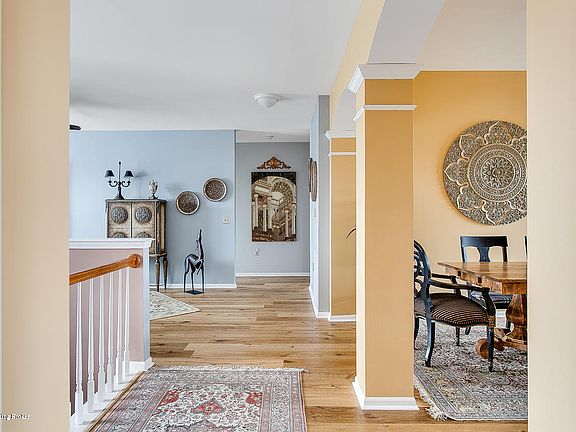 Welcome to maintenance-free living at its finest in the desirable Cobblestone community with amenities even the most discerning buyer will respect. A few steps will lead you to 1,911 square feet of living space all on one level featuring two bedrooms and two full bathrooms. The strategically designed open floor plan offers soaring 10-foot ceilings, arched openings, an inviting gas fireplace and illuminated with an abundance of windows (rare for condominiums). Stunning and unique wide-plank hardwood floors and plantation shutters are a sampling of the high quality finishes featured throughout. The eat-in kitchen includes upgraded cabinets, granite countertops, stainless steel appliances, LED recessed lighting and two spacious double door pantries. There is a "flex" space featuring a beautiful stone accent wall that is currently occupied as an office but could be used as a formal living room or converted to a third bedroom. The master suite comes equipped with a spacious bedroom, three large closets (one of which includes a walk-in closet), large vanity and a private bath with an oversized walk-in shower. The second bedroom, second bathroom and generously sized laundry room featuring a built-in ironing station are thoughtfully positioned in the unit. Additional features include an outdoor deck overlooking green space, security system, a heat pump to allow for optimum efficiency and a two-car garage with upgraded lighting, electrical and a storage closet. The Cobblestone community offers a Clubhouse, fitness room and pool. All this and more while conveniently located off Brownsboro Road near the Paddock Shops, Norton Brownsboro Hospital, Costco, Norton Commons and I-71.