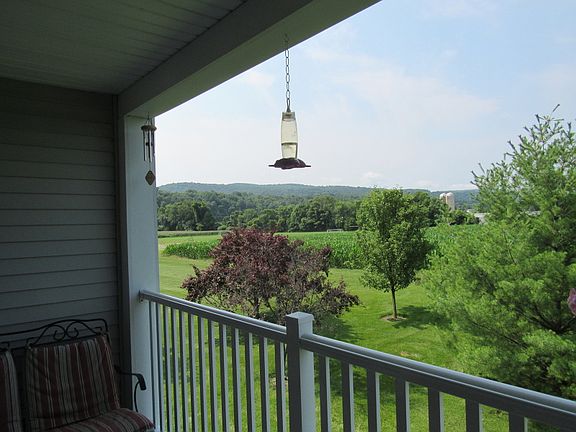 Generous SUN EXPOSURE and Gorgeous view of the farm and rolling mountain side. Exeter end unit with hardwood flooring, gas fireplace, crown moldings offering ample space throughout the formal and informal living & dining spaces which are complimented by neutral decor, cozy fireplace and more... Upon entering the unit you will see the open and spacious feeling that is consistant throughout, this space leads to the guest quarters which consist of a generous sized bedroom and full bath. The living room provides access to the covered balcony. The kitchen which is open to the family room features a large center island and an abundance of cabinetry plus offers a fantastic view of the family room's main focal point.