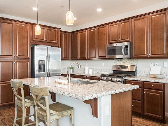 Beautiful, single story home with a functional open concept floor plan. The kitchen features gorgeous granite countertops set off beautifully by dark wood cabinets. Updated wood plank tile flooring throughout the entire main living areas. Newly painted interior. Private master suite overlooking your own backyard oasis! Enjoy more than 1500 sq ft of outdoor living with this completely landscaped backyard featuring a fully equipped, custom L-shaped outdoor kitchen, highlighted by a Blaze 5 burner Professional grill and outdoor refrigerator. Artisan craftsmanship is evidenced in the hand laid stone, custom oversized concrete countertop and under counter lighting. All framed by a substantial 20'x20' Gabled Insulated patio cover, complete with lighted ceiling fan and post lights. Enjoy a cozy evening with friends and family around the fire at the custom circular seating area which seats 8-10. Highly energy efficient home including owned solar. Welcome home
