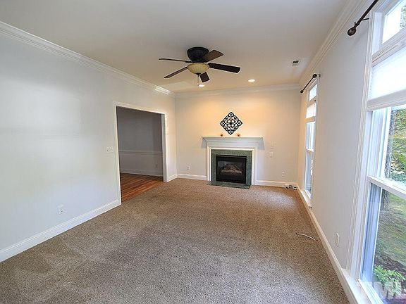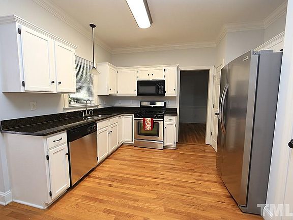 New roof 2017; Water Heater 2015; HVAC 2013. This house features 9' ceilings upstairs and down; vaulted ceiling in master bedroom; extensive crown molding; hardwoods in entry, kitchen and dining; gas range; granite counter-tops; SS appliances and fenced backyard. It is also conveniently located to RTP, I-540, RDU and shopping. Neighborhood has walking trails, a playground and volleyball court. There are also tennis courts and a pool that is available with a club membership.