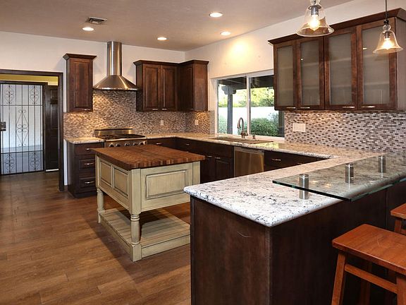 Foothills charming Territorial with lovely mountain views from the large covered veranda as you enter home. Inside old world meets dramatic new with gourmet kitchen delight featuring gas range, Advantium Chef's oven, wine cooler, SS appliances, solid wood cabinets, granite countertops. New flooring thru out, new light fixtures. Window were all replaced 2 years ago. Automatic outdoor screen shades. Garage freshly painted and floor seal coated. Ceiling fans thru out home. Almost an acre in a great Tucson neighborhood with fruit trees, pool/spa and gazebo nestled above it all and amazing mountain views. Private serene and peaceful come to mind. All this just minutes from great restaurants, shopping, U of A campus and downtown.