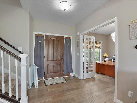 Move in ready better than new in Wills Trace!! Large front porch welcomes you into this open floor plan with flex office / sitting room complete with double doors for privacy. Beautiful engineered hardwood floors through the main floor and gorgeous dark quartz countertops complimented with a white island. Stainless steel appliances, ample cabinetry and pantry for additional space and the 1/2 bath and drop zone lead you to the 3 car garage. Second floor features master suite with cathedral ceiling, walk in closet and spa like bath with large soaking tub, double vanity and walk in shower - plus 2 guest rooms, bathroom and laundry. You wont' want to miss the fully finished basement complete with great room, 4th bedroom, 3rd full bath and room for additional storage.