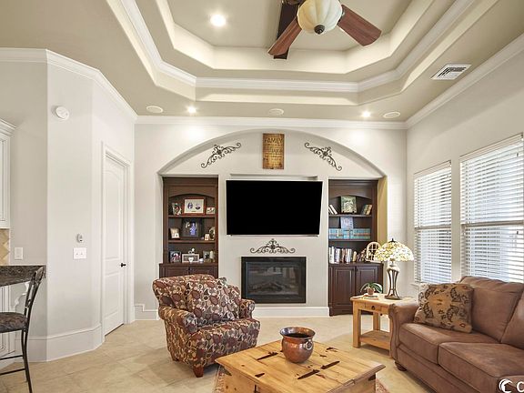 Introducing this luxurious 3 bedroom, 3½ bath, home in the prestigious & gated community of The Bluffs on the Waterway. As you enter you take notice of the elegance of the grand foyer and the brightness of the floor plan. As you continue to make your way, you began to notice all of the exquisite features of the home which include ceramic tile flooring, 9 inch baseboards, arched entryways, smooth flat 11 to 13 foot ceilings with crown moulding, guest powder room, a graceful formal dining room, a sunlit comfortable living room overlooking the tranquil lake with a cozy fireplace along with a two step tray ceiling with beam accents, a private office, and showcases a spectacular & inviting back lanai area with memorable lake views. Prepare a fresh meal in the gourmet kitchen which features a stainless steel appliances package, French door refrigerator with a freezer drawer, gas cook top with pot filler faucet, dual wall ovens, dishwasher, breakfast bar, full height custom cabinetry with crown moulding, granite counter tops, and a practical walk-in pantry. The peaceful master suite features a French door access, an all encompassing double step tray ceiling with crown moulding, a sensational sitting area with lake views, his & her walk-in closets, private access to the master bath that presents his & her custom cabinetry vanities, a soothing jetted garden tub, a water closet, and a deluxe walk-in shower. This upscale home is completed with two additional bedrooms, a full guest bath, a versatile laundry room, and a side load attached two car garage. The Bluffs on the Waterway community offer first class resort style amenities that include a large sparkling pool with sundeck, two clubhouses, a private boat launch, boat storage, tennis courts, a children’s play area, along with Intracoastal Waterway access. This home affords you easy access to the beach and golfing along with all of the other activities and happenings in Myrtle Beach including fun eateries, award winning off-Broadway shows, public fishing piers, and intriguing shopping adventures along the Grand Strand. Conveniently located to your everyday needs, including grocery stores, banks, post offices, medical centers, doctors’ offices, and pharmacies. Check out our state of the art 3-D Virtual Tour.