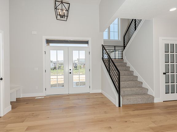 Beautiful New Construction with Stone front and 8ft entry front door. Black exterior windows and white interior. Open plan with 18ft ceiling in the Entry and Living Room. White Oak hardwood floors on the main. White Kitchen cabinets, white oak center island eating bar, quartz countertops, tiled backsplash, stainless appliances and walk in pantry. Main floor Laundry/Mudroom with built in lockers. First floor Master suite with walk in tile surround shower, freestanding tub, 2 sink vanity and walk in closet. Open staircase with metal railings up to Loft, 3 large Bedrooms, Full Bath with a 2 sink vanity. Basement has a large family Room, Bedroom, full Bath and great storage space. Fully sodded 70 x 153 yard and landscaped around entry.