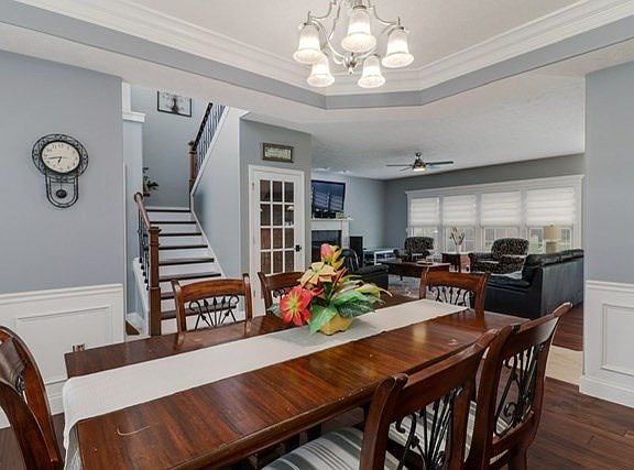 Outstanding open floor plan. Family room up has gas fireplace. Kitchen has beautiful cabinets, pantry, and center island with tile floor. 1st floor laundry includes sink. Dining room with crown moldings. Spacious bedrooms. Master w/his and hers walk in closet, bath with huge garden tub, double sinks and separate shower with seat. Finished basement includes 2nd family room and 5th bedroom.