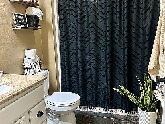 -Kitchen equipped with stainless-steel appliances, granite countertops, large island with breakfast bar