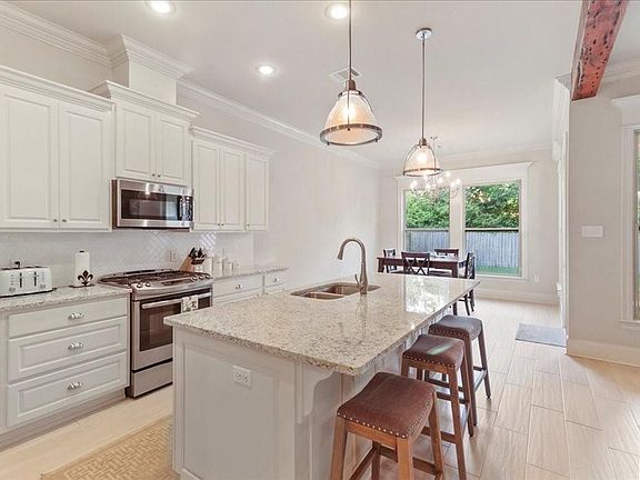 The Oaks of Guste Island! Featuring 4 bedrooms, 2 full baths, wood look tile floors in all living areas, brick & shiplap fireplace, wood beams, beautiful light fixtures & 2 car garage. Open floor plan with large kitchen island, stainless appliances, and dining area. Primary suite w/ separate tiled shower, soaking tub, and walk in closet. Mudroom area and covered patio. Community Pool, Walking Trails & Green Space! Must see! Flood zone C!
