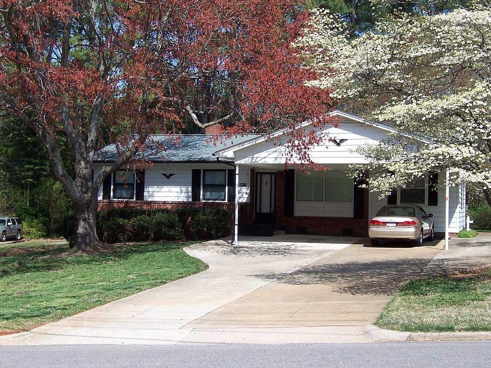Brick ranch with wonderful yard and plenty of off street covered parking. Sunporch, nice deck, private backyard as well as detached storage building. All appliances including washer and dryer are provided. Hardwood floors in the great room, carpet in the bedrooms. Gas heat, central air. Convenient to NCSU. Short walk to Kent Park.