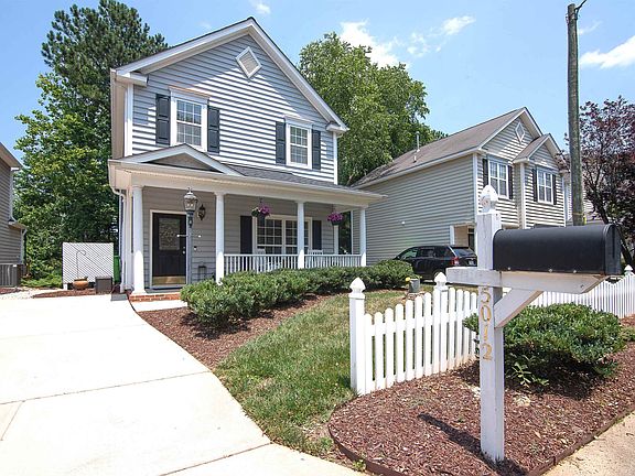Rare opportunity to own an adorable home in the charming and desirable Village At Harrington Grove! This fabulous model has been updated and renovated to boast Luxury Vinyl Plank flooring, granite countertops, stainless appliances, a huge 22x16’ deck, gas fireplace, wainscoting paneled dining room, large master suite with double vanity and walk-in-closet, covered front porch perfect for rocking chairs. This incredible home exudes charm & is move-in ready! Easy access to shopping, 540, RDU, Brier Creek, RTP and Universities.