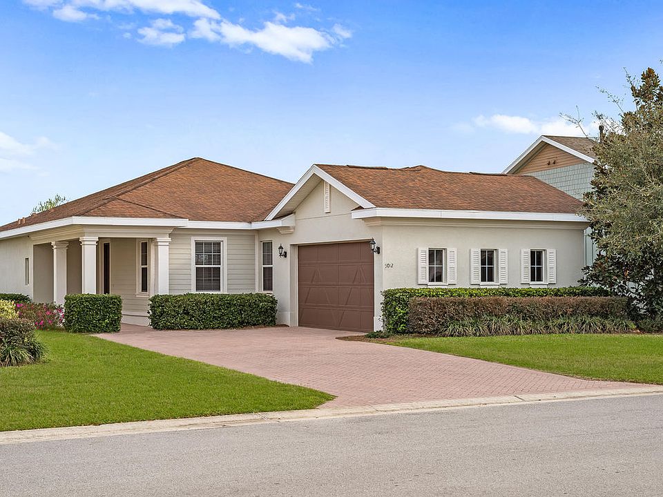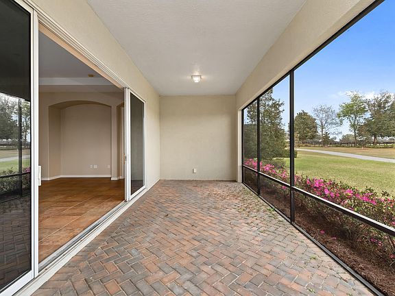 Beautifully maintained 2/2 with den and oversized garage on a premium lot in Trilogy at Ocala Preserve. This stunning home has it all. Through the front courtyard, you walk through a grand doorway into a home with tray ceilings, crown molding, and PASTURE VIEWS. Ocala is known as 'horse country', so what better way to experience Ocala living than with views of pastures and horses! The living area is large and has tall ceilings. The eat in kitchen has a beautiful peninsula perfect for entertaining, with high end granite and ample cabinet space. The living room has large sliders that open to a screened and pavered rear patio. The office/den rests right off of the living area and doubles as a hobby room! The master bedroom is generous in size and has tray ceilings and large windows. The master bathroom has dual sinks and a separate tub and shower. The second bedroom has a deep closet with shelving and the guest bathroom is perfect with a shower/tub combo. The laundry room rests between the oversized garage and the kitchen! Call today for your private viewing!
