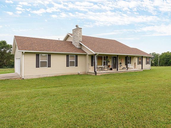 Welcome to a serene country retreat nestled between Pleasant Hope and Bolivar in Polk County. This charming property, set on over 21 acres of partially wooded and pasture land, offers a peaceful escape from the hustle and bustle of everyday life.The home which has had a NEW roof installed in July of 2024 features 3 bedrooms and 2 bathrooms, thoughtfully designed with wood floors, tile, and carpet. The wide hallways and doorways are perfect for aging in place, enhancing comfort and accessibility.Upon entering, you'll be greeted by an open-concept living area with a striking rock fireplace as the centerpiece. The kitchen is a chef's dream, equipped with a gas cooktop, two double convection ovens, and soft-close cabinets finished with elegant granite countertops.The master suite is a spacious haven, complete with a walk-in shower, jetted tub, and a large walk-in closet. The hall bath features a tub/shower combo with granite and tile finishes. For added convenience, the laundry room includes cabinets and a door. All interior doors are solid wood panels, adding a touch of classic charm.The oversized 2-car garage provides ample space for your yard equipment and more. Step out through the sliding glass doors in the dining area to discover a covered porch and an above-ground pool, ideal for relaxing evening swims or entertaining guests.With over 21 acres of possibilities, this property is a perfect canvas for your country living dreams. Embrace the tranquility and endless potential of this beautiful home. Welcome to your new country oasis!