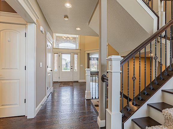 Lake views, hardwood floors, open spaces and incredible features, this home has it all! From the entry through most of the main floor you can take advantage of beautiful lake views as this home sits on the SW corner of the neighborhood lake. The open floor plan combines a spacious kitchen, comfortable breakfast table room and an amazing living room with a 2-story wall of windows looking to the Northeast. The backyard includes 700sqft of custom brick and stone patio space with a firepit and built-in seating. Perfect for evenings by the lake! The kitchen will not disappoint with double ovens, a 5-burner gas cooktop, convection/microwave oven, dedicated space for a wine fridge and great pantry storage. The master-suite continues the trend with a custom tray ceiling and views to the lake through triple windows. The bath feels like a spa with heated tile floor, a custom tiled shower with dual shower heads, separate vanities and 2 impressive walk-in closets. Bedroom 2 includes an en-suite bathroom while bedrooms 3 and 4 share a 'Jack-n-Jill' setup with private water closets and shared vanities. The lower level is ready for movie night, game night or hanging out with friends. It includes a dedicated theater room with a 130"+ projection screen, a 13' granite bar with full fridge and a family/rec room. You'll also find bedroom 5 and another full bathroom plus storage/workshop space. The roof on this home is new in April of 2023 and a CVAC system was added for extra convenience. Pre-Inspected for your convenience!