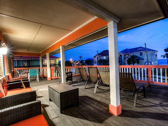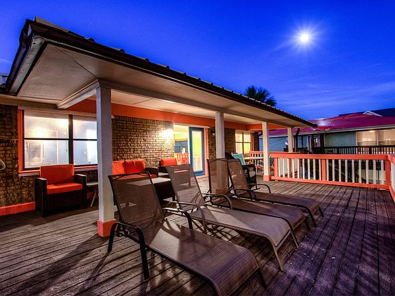 Attention investors, zoned SR-2 Seasonal Resort Commercial. Spacious, Gulf view beach house is a rental machine that can accommodate 16+! 3D VIRTUAL TOUR ATTACHED. Perfect location directly across from Beach Access #3. Home has unique lockout capacity with 3 kitchens and 4 separate living areas. Fifth bedroom currently used as a gameroom, and three full baths. ''Sandy's Beach House'' has an oversized Gulf view deck off the second floor living area. Newer metal roof, AC units, appliances, and fresh paint. Private, fenced yard with firepit, hot tub, grill, outside shower, and enclosed outdoor bar. Offered fully furnished, ready to rent. Perfect for large family groups in the summer, and can be rented as three smaller units during the off season. Would also make a wonderful primary residence