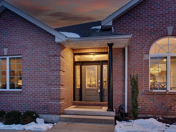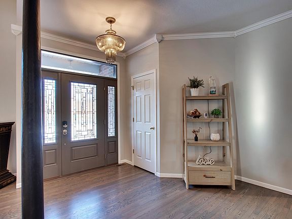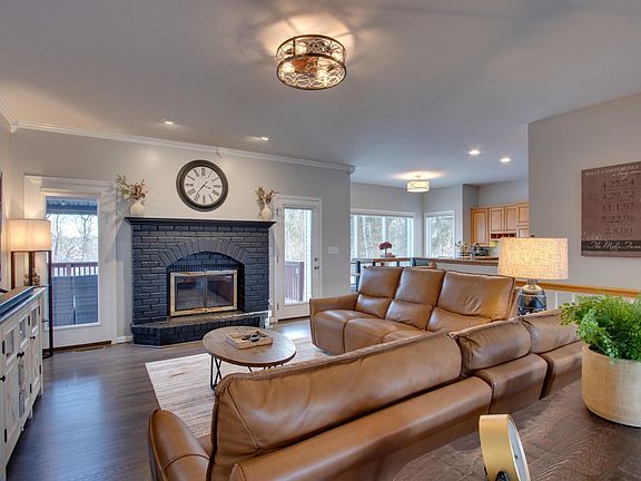 This exquisite home feels like a retreat from the outside world. Nestled in a tranquil cul-de-sac, it boasts almost two acres of private wooded surroundings, allowing wildlife to be right at your doorstep. The serene palette of neutral colors throughout the home creates a calming atmosphere and complements the stunning views visible through the abundant windows. The lovely master suite serves as a sanctuary for relaxation, featuring a bright, spacious master bath equipped with a jetted tub, shower, and heated floor. The daylight walkout basement includes a large recreation room, perfect for entertaining, complete with a fantastic theater screen and an impressive built-in bar. A separate family room offers a warm and cozy space to curl up with a book in front of one of the three fireplaces. Enjoy the peaceful surroundings from the comfort of the expansive deck, which features a wonderful pergola. This elegant yet comfortable home is rounded out by numerous additional amenities, including ample storage space, a heated garage, a vaulted dining room ceiling, smart home features, and geothermal heating.