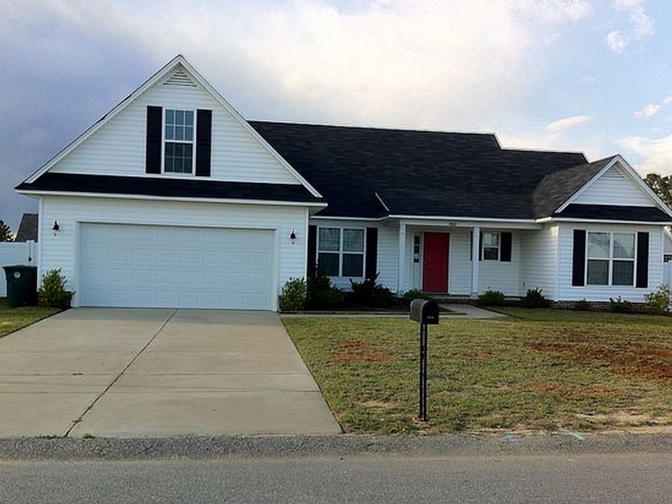 Great 3 bed, 2 bath house with vaulted ceilings in the living room and master bedroom - close to Fort Bragg and 295 access. Stainless steel appliances with additional mini fridge in kitchen, five piece master bath, two car garage. Hardwood floor throughout. Walk in closet in master bedroom. Electric central heat/air. Covered front and back porches with additional patio space in back. Privacy vinyl fence in backyard. Finished bonus room over the garage can be used as fourth bedroom. Washer/dryer hookups in laundry room. Cable and high speed internet ready. Small pets allowed upon approval with deposit. Brand new fridge, microwave and dishwasher!