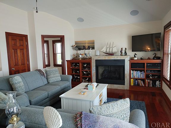Wonderful Opportunity for an upscale 5 bedroom canalfront home with elevator, pool, boat dock and incredible sound views. Each bedroom has a private bath, two baths feature spacious custom tilework showers. The great room with cathedral ceilings, Brazilian Cherry hardwood floors and custom shelving, lives large toward the sound and endless views. The kitchen is sure to please any chef with high-end cabinetry, granite countertops, gas countertop range, double wall ovens and pantry closet. The 3 bedrooms on the mid-level each have sliders to decks with sound views. The family room/den gathering place with wet bar and full refrigerator could also be used as a game room. The large 16’ x 32’ heated pool is a wonderful place for family and friends to gather. The boat dock with fish cleaning table on the canal leads to the Pamlico Sound for those who love to play on the water. There is a storage room for beach and fishing gear and more storage under the house for kayaks, paddle boards or canoe. This home must be seen to be appreciated. Schedule a tour soon.