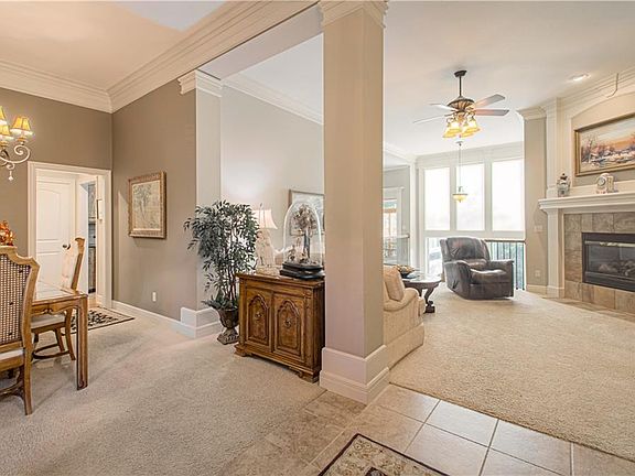 Beautiful Reverse 1.5 Story home in Heather Glen, Maintenance provided community on a cul-de-sac lot. Meticulously maintained!! Upon entering the home you'll be greeted with tall ceilings throughout the main level, 2 Story windows in the great room and stunning crown moulding throughout. In the kitchen you will find hard wood floors, custom cabinets with granite counters, a gas range. Stunning crown moulding throughout, plantation shutters on the windows, a true dining room and a breakfast area. The sellers have added an all seasons room with AC/Heat year round. The primary bedroom features separate owners closets, double vanity, toilet room, soaker tub and shower. The lower level features a recreation room with walk out to patio and yard, full bar, the third bedroom and full bathroom. Large unfinished area for ample amounts of storage. 3 car garage with epoxy flooring.
