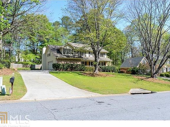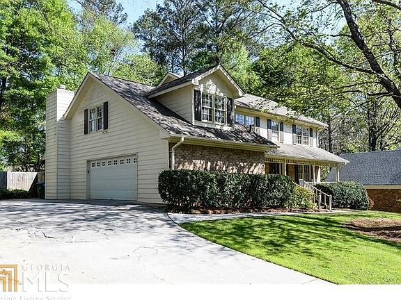Charming, well-maintained colonial home with welcoming front porch in Peachtree Corners. Beautiful lot with mature hardwoods - fenced in back yard - plenty of room for the children to play! Quiet street. 5 large bedrooms and 3 full baths. Convenient bed/bath on main level. Hardwoods through-out the home; carpet in upstairs bonus room. Bright kitchen with laundry and garage just steps away. Strolling sidewalks to the Forum, excellent schools.