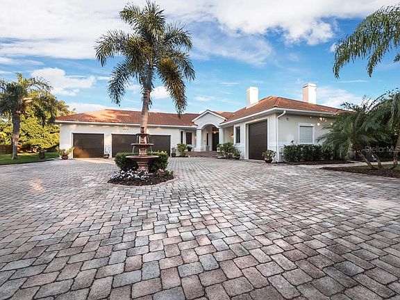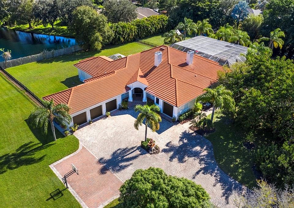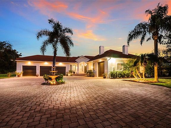 It is a true rarity to find this much private space nestled within a short distance to some of Sarasota's top-rated schools. Upon passing through the gates of this completely fenced property you are immediately engulfed in a sense of privacy and space. The long paver drive provides an abundance of parking and the open area is sprawling, perfect for playtime with family and pets. This wonderful 4-bedroom, 5-bath home with an office is remarkable in many ways. Upon entering the foyer one notices the intimate details and practical flow of the home. Open but separate, this home is incredibly user friendly with immediate views of the central living room and outdoor patio beyond. A chef's kitchen complete with stainless steel appliances and a convenient center island opens up to the breakfast room that is adorned with light through aquarium windows. The spacious family room is a wonderful spot to keep little ones close by but easily closed off to hide toys and such. The master suite features wood floors, tray ceilings, and French doors that open to the lanai. A marble and glass bathroom features dual sinks, a very spacious shower, and large jetted tub, a perfect blend of utility and space. This split plan design separates the 3 guest bedrooms from the master wing providing well-deserved privacy. Most notably recognized and appreciated are the outdoor living and entertaining area. Ample covered and open areas combine to make this the home where gatherings occur. The oversized covered lanai with a wood-burning fireplace and generous space for seating and alfresco dining is the epitome of indoor/outdoor living. All can appreciate the fully equipped summer kitchen complete with flat top grill, BBQ grill, refrigerator, sink, and Kegerator that seats 12 behind the multi-level bar. Tennessee River Rock adorns the entire lanai, spa, pool, and pool deck. The heated saltwater pool with beach entry, multi-colored lights, rock fountain, and 15-person spa with waterfall and stream that flows into the pool are undoubtedly the main focal point. Motorized outdoor window coverings for protection from the elements, an additional private screened area, separate fenced areas in the yard and garage space for four vehicles are but a few of the other features that make this home stand out. Surrounded by even more space, tropical landscaping and lighting, this will always be the home that folks want to visit and enjoy the embodiment of the Florida lifestyle. Schedule your tour of this special property today.