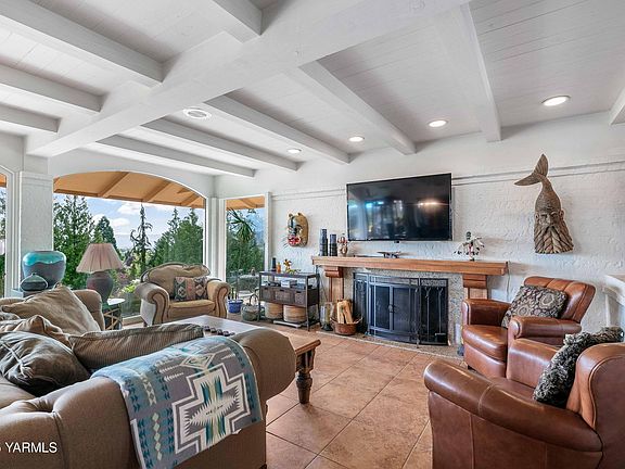 Experience sweeping city views and Modern Southwest charm in this beautifully updated 3,728 sq ft home on private Homesite Drive. With an open-concept layout and walls of windows, natural light fills the spacious interior. The sleek kitchen features a gas cooktop, double ovens and opens to a covered patio-perfect for year-round entertaining. You'll find four bedrooms, including two ensuite retreats, along with stylishly updated bathrooms and multiple living spaces. Outside, enjoy low-maintenance landscaping and a dedicated shop off the garage-ideal for hobbies or extra storage. This home blends comfort, style, and functionality in one of Yakima's most desirable settings.