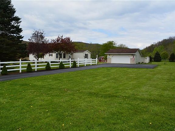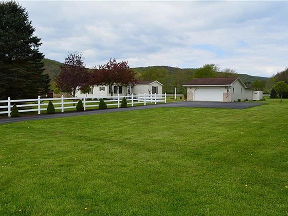 Welcome home to this 2+ bedroom, 2 full bath, well maintained home on almost 2 acres! Located on a quiet street in the desirable Ellicottville School District! Just starting out or thinking of downsizing, this home is for you. This home is in move in condition, a beautiful addition off the back is used as a family room but could be turned into a 3rd bedroom! An enclosed front porch is roomy and cozy to have your morning coffee in. The blacktop driveway lined with a white vinyl fence leads to the 2 car garage with heated workshop off the back! Central A/C and whole house generator! There are also 2 additional storage buildings on this picturesque lot!