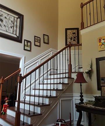 This home is on a very private lake with only 13 lots. Sand beach area and a Jon boat to fish on the lake. Wooded lot with professional landscaping including flowering Cherry trees and Crimson Maples. The house is full brick. Has a large wood burning fireplace. There is a screened in porch off of first deck and French doors from master bedroom onto a smaller private deck. 35 year architectural roof installed, all new windows with vinyl wrap on the exterior. The house has been upgraded with over-sized gutters, new custom cherry-wood kitchen, hardwoods throughout (with the exception of 3 guest bedrooms, granite master bathroom, 3 garages, and a fully finished basement with 4 separate rooms and a separate entrance. The basement adds an additional 1646 sq. feet to the home. Main level bedroom with access to a full bathroom kitchen and family room. Property also has an electrical connection for and RV or an electrical vehicle. HOA dues are voluntary.