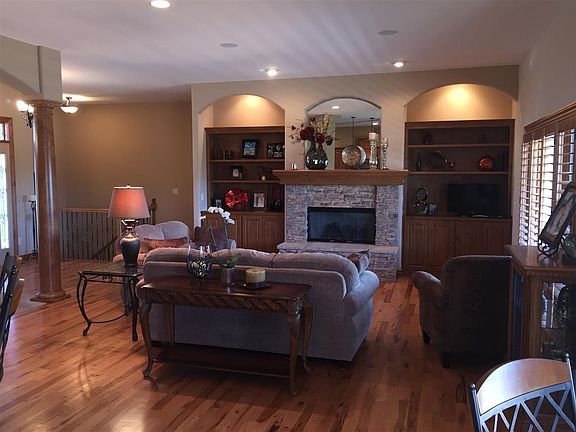 Gorgeous stone lakefront home, open 1881 sf split 2 BR plan featuring a large kitchen open to the great room, custom alder cabinetry, solid raised-panel alder doors and hickory flooring throughout...plus plantation shutters in the whole house! Gourmet stainless steel appliances, walk-in pantry, lots of built-ins all impeccably maintained with new paint inside & out. The spacious MBR suite offers a corner whirlpool tub, 5' shower and huge walk-in closet. The 12'x20' covered Genovations deck overlooks the private beach and boat dock. Full 9'walkout basement offers 2 bedrooms on one end and a 5th BR or office/shop area with another full bath that walks out to the lake...perfect for beach gear and fishing tackle. Basement is also pre-plumbed for radiant-floor heat (activation optional). Fantastic professional landscaping with soothing water features in front and back.