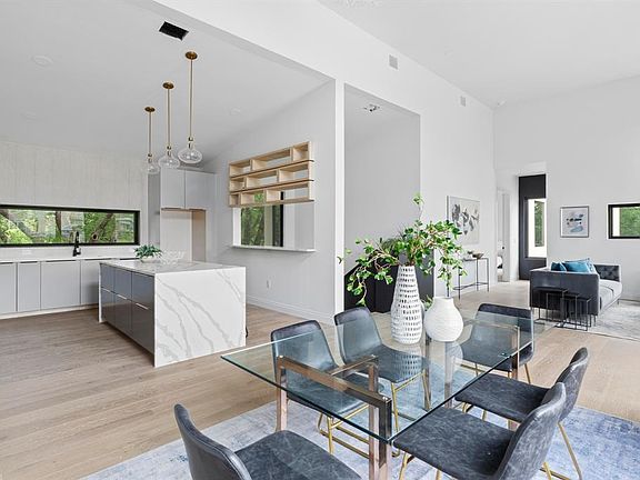 Stunning 2,700 sqft, stylishly modern, East Austin new build. Nestled in an enclave of newer homes, it offers exceptional curb appeal, sleek stucco exterior, and gorgeous windows. This home is filled with natural light from the moment you enter through the oversized metal and glass front door. Inside, you’ll love the open floor plan, soaring ceilings, and elegant light oak wood flooring throughout the main level. The heart of the home is the chef-inspired kitchen, featuring custom cabinetry, a waterfall quartz countertop, pendant lighting, and a large picture window above the kitchen sink overlooking mature trees in the backyard. The kitchen opens to a spacious dining area with a show stopping chandelier. Perfect for entertaining. The main-level primary suite offers a serene retreat with vaulted ceilings and a spa-like bath complete with a double vanity, walk-in shower, and large walk-in closet. Downstairs, a second primary suite with an ensuite bath and generous walk-in closet offers flexibility for multigenerational living or hosting long or short-term guests. High-end finishes, thoughtful design, and an unbeatable location make this home a standout in one of the most sought-after pockets of Austin’ East Side.