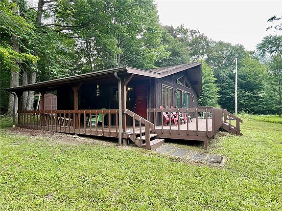 LOCATION! LOCATION! Within minutes of Beautiful Kinzua Country and the National Forest,if you’ve been looking for a place to call Home or for a Seasonal Chalet outside of town,look no further!Retreat to your cozy sanctuary and enjoy the nature that surrounds you.Tucked away from the road and nestled among the trees,you are sure to appreciate all that this property has to offer.The open floor concept for the Custom Kitchen which also includes the bonus of a newer Stainless Steel refrigerator & gas stove,Dining Area,and Living Room area welcomes you in with the convenience of being a 1-Story.The gorgeous vaulted knotty pine ceilings and the woodstove add to the charm and appeal of the space.A spacious Front Deck makes for the perfect place to relax,and large enough to enjoy getting together.On those crisp clear evenings this is the perfect spot to stargaze.This 2 Bedroom (ample sized and with closets),1 Full Bath on 2(+-) acres is that & more without being too far from amenities!The private and sizable lot allows for an abundance of parking,storage,or whatever your needs may be a large storage shed for all of your outdoor necessities.Please contact us today to schedule your tour!