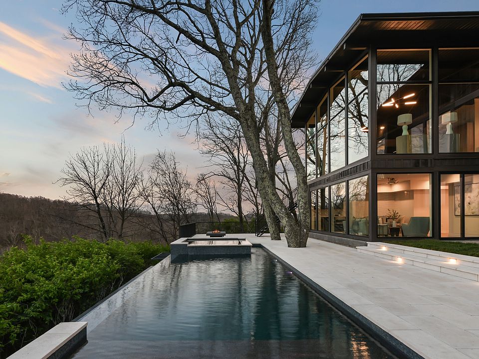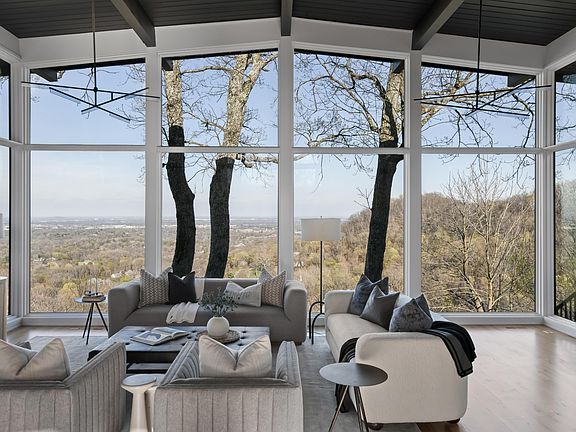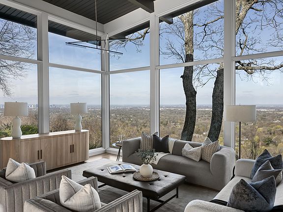With breathtaking views and an unparalleled location, this is a once-in-a-lifetime trophy property. Above the city, yet minutes from Green Hills, 12S, and Brentwood, this Mid-Century stunner has been meticulously overhauled for modern living. Walls of windows offer stunning panoramic city views and the serenity of living amid nature. Indulgent outdoor space w/ infinity edge pool, terraced hardscape & fire pit. Start your day with yoga on the side terrace, surrounded by lush greenery. At night, relax in the lofted living/entertaining space and enjoy stunning views of the skyline & stars. Gated private drive, catering kitchen, cabinet-grade closet w/ integrated lights, dual laundry, den w/ wet bar, living room bar w/ custom wine storage, media/flex room, dedicated office, & much more.