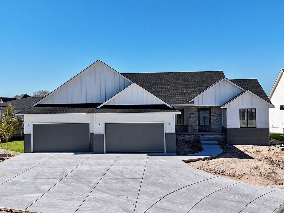 Discover your dream home with this stunning new build by Buckert Contracting, INC., located on one of the last available lots in the coveted Sandcrest community. This expansive residence features five spacious bedrooms and three and a half bathrooms, making it perfect for families of any size. Step inside to be greeted by soaring 12-foot flat ceilings in the primary living area, complemented by large picture windows that flood the space with natural light. The master bedroom offers a serene retreat with its private bath, generous walk-in closet, and convenient access to the laundry room. Enjoy the ease of a half bath on the main floor, perfect for guests. The fully finished walk-out lower level is an entertainer's dream, complete with a wet bar and a massive pantry that accommodates a full-size fridge, plus two additional bedrooms for family or guests. Relax and unwind on the covered deck, or take a short stroll to one of the neighborhood pools and private beach areas. Nestled in a peaceful cul-de-sac, this home is the perfect blend of luxury, comfort, and convenience. Don't miss your chance to make this exquisite property your own! This home is currently under construction and pricing is subject to change without notice. Some information may be estimated and is not guaranteed. Please verify schools with USD 266.