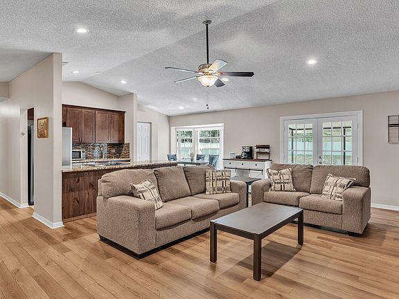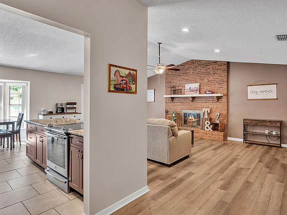 Discover your dream home in South Lakeland near Polk Parkway, County Line Road, and I-4. This stunning, extremely well maintained 3-bedroom, 2-bathroom home, which is cute as a button, features beautiful wood-like vinyl flooring and a cozy living room with a wood-burning fireplace. The Open Concept of Living Room and Kitchen, offers stunning GRANITE countertops, perfect for casual seating and socializing and also beautiful STAINLESS STEEL APPLIANCES. Step outside through the French Doors to the well-manicured yard, adorned with mature oak trees and vinyl fencing, which offers both privacy and charm. Sit on your back screened in porch with a cup of coffee and enjoy your own back yard oasis. With NO HOA restrictions, enjoy the freedom to personalize your space. Conveniently located between Orlando and Tampa, and close to shopping, medical facilities, and entertainment, this home combines comfort, convenience, and style. Updates include: 2023 New AC and 2021 New Roof! Won't last long!!