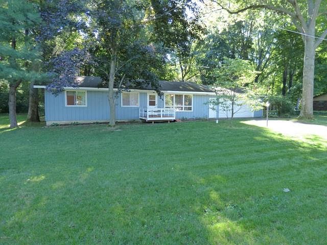 Sister Lakes ranch home with dedicated access left to Cable Lake and dedicated access right to Little Crooked. Short golf cart distance to each. (Gentlemans agreement for boat parking privileges on Little Crooked Lake.) Gorgeous newly remodeled home with true hardwood flooring throughout. The kitchen is beautiful with quartz counters, marble backsplash, stainless appliances including a convection/microwave. Fairly open concept with dining, kitchen, and living rooms. Enjoy the private backyard while sitting looking out the sliding doors to the deck with woods behind you. Lovely mature trees and landscaping. Great outdoor space with this double lot. Ceramic tiled bath. Ceiling fans throughout. Closeted laundry.Two car attached garage and a convenient garden shed in the back yard. This is a lovely home that is well cared for and move in ready. Consider this home as a terrific year-around residence, but would also be a fabulous vacation home.