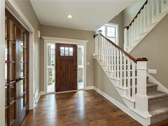 .45 ACRE LOT in sought after Waterford Landing. Move in ready 2 story with many quality finishes. Welcoming front porch. Enter into light, airy home, sun streaming thru the very large windows on main flr. Stunning hardwood flooring throughout the entire main level. Ideal home office w/ French doors w/custom built-ins & window seat. Great Rm features stone fireplace & bltins . Dream kitchen showcases abundant white cabinets, huge counter top working spaces, granite, large island, built-in buffet, & SS appliances & 3 windows over kit. sink! Vaulted Sun Rm is a great bonus. Switch back stairs to upper level. Primary suite w/trayed ceiling, dble sinks, tiled shower, soaking tub, private commode rm pls lrg walk-in closet. 3 add'l bdrms. 2nd-floor laundry rm w/cabinets. Finished Lower Level offers 2nd family rm, wet bar, 5th bdrm, full bath, French doors to gym rm. Storage Rm with shelving. Fun outdoor entertaining on the custom stamped concrete patio w/ pergola. Add'l features: Drop Zone. Fenced back yard, irrigation, security, radon system, garage heater & shelving & Nest thermostat .