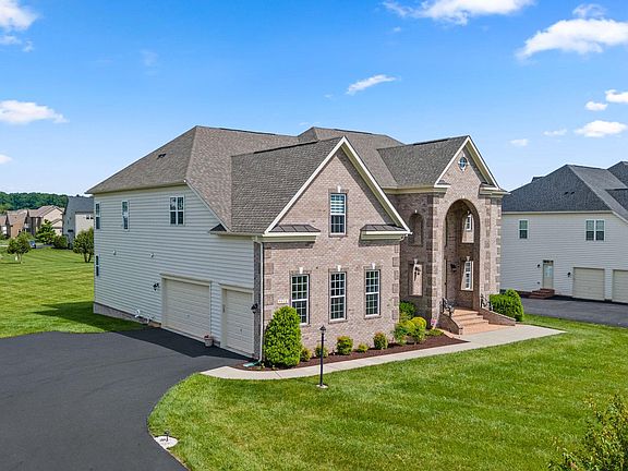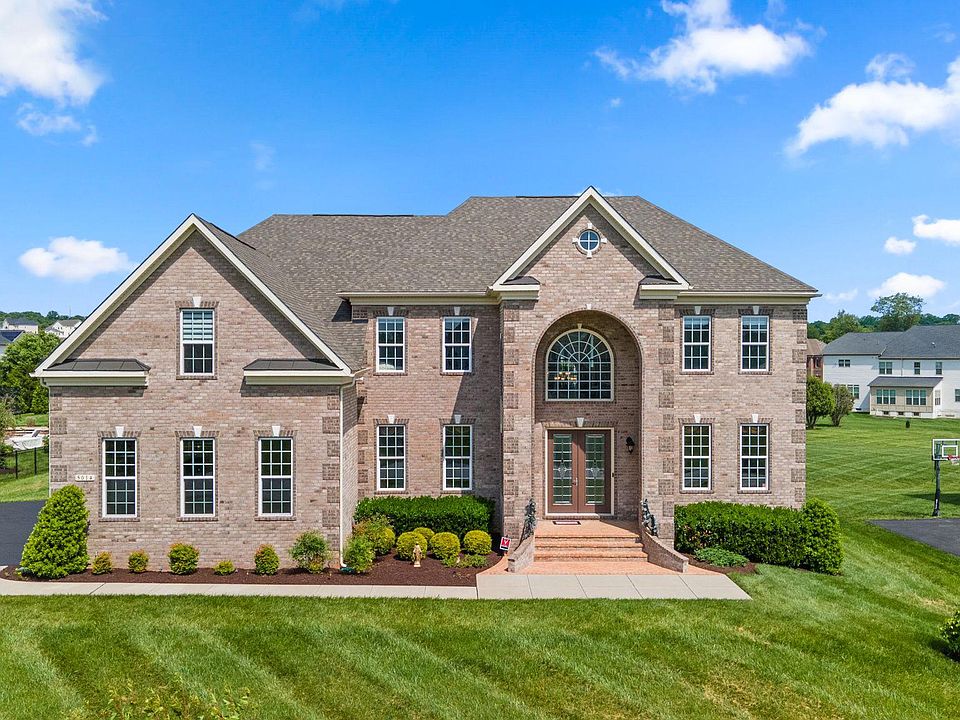 This gorgeous home built in 2020 is sure to impress with enduring curb appeal, spacious open floor plan, grand features, and elegant finishes. Step inside the main level to the astounding foyer with double grand staircases, formal dining room, office or study, family room, kitchen, additional dining space, sunroom, half bathroom, and a guest suite with full bathroom. The large family room boasts a fireplace, high ceilings, a stunning chandelier, ample natural light, and an additional split staircase leading both up and downstairs. A cook’s dream, the gourmet eat-in kitchen is equipped with Kitchen Aid® stainless steel appliances, granite countertops, custom backsplash, a large island with seating and additional cabinetry, 2 sinks, double ovens, a gas range, a wine fridge, a large pantry, and a large sunroom with custom crown molding and recessed lights. Retreat to the luxurious owner’s suite with a spa-like bathroom and 3 walk-in closets. 3 additional bedrooms with en-suite bathrooms including 1 buddy bath reside on the upper level. The finished lower level hosts a large open rec room, bonus room, full bathroom, additional bedroom, and unfinished space for storage. A 3-car garage boasts space for vehicles or tools and a 220 EV car charger in the garage. Large deck overlooking the meticulously landscaped large and flat backyard with sprinkler system. Enjoy peace of mind with the security system installed at every doorway and window. This sought-after community offers proximity to dining and shopping on Route 40, nearby access to Highway 70, 29, and 695, and a short drive to BWI Airport for a weekend getaway.