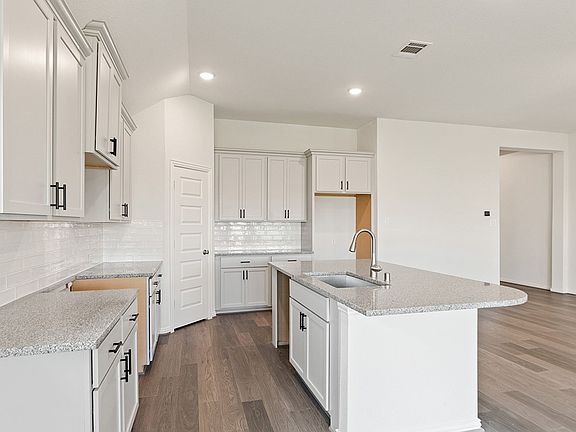 Make a statement with a striking exterior, then step inside to an open layout accented by sleek, contemporary finishes!This beautifully designed new construction home combines timeless style with everyday functionality, offering an open-concept layout that creates a bright, welcoming atmosphere perfect for both entertaining and family living. At the heart of the home, the chef-inspired kitchen features sleek stainless steel appliances, richly finished custom cabinetry, and gleaming granite countertops that provide the perfect blend of beauty and practicality. A spacious island anchors the space, doubling as a prep area and a natural gathering spot for casual meals or lively conversations. Durable laminate flooring flows seamlessly through the main living areas, creating a warm and cohesive look, while tile in the wet areas adds both style and easy maintenance. The private owner's suite is thoughtfully designed as a serene retreat, complete with dual vanities, a soothing soaking tub, a separate shower, and an oversized closet that provides ample storage and organization. Generously sized secondary bedrooms offer flexibility for children, guests, or a home office, ensuring comfort and privacy for everyone. Outdoors, a covered patio extends your living space, ideal for morning coffee, evening barbecues, or relaxing under the Texas sky. The fully landscaped backyard, complete with lush sod and a built-in sprinkler system, makes outdoor enjoyment effortless year-round. Move-in rea