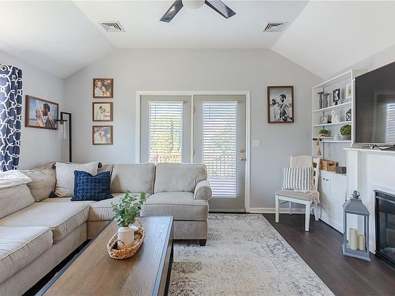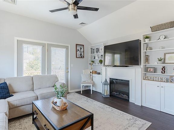 • Description: LVP, electric fireplace, built-ins, French doors to deck