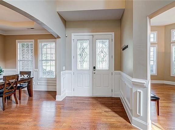 Stunning full brick & stone home backs to wooded area in Ballantyne! Home boasts a large welcoming craftsman style front porch. Open floor plan w/ an impressive 2-story entry, dual staircases w/ wrought iron balusters, 10 foot ceilings, upgrade wrought iron balconies. First floor features beautiful hardwoods, formal dinning w/ extensive moldings, sunken sitting room, beautiful sunroom with French doors, great room w/ a fireplace overlooking the wooded backyard. Gourmet kitchen w/ granite counters, a large island, and SS appliances including double ovens. Oversized master bedroom w/ tray ceilings and a cozy fireplace. Master bath w/ dual vanities & relaxing garden tub. Large additional bedrooms with 2 Jack & Jill baths! Versatile bonus room. Community pool, play ground, club house. Walk to the newest development - Waverly/Rea Farm which offers high end shopping, restaurants, and fitness center, this home is the perfect spot for anyone to live. East access to I-485 & uptown Charlotte!