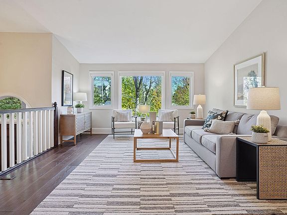 Step inside to vaulted ceilings, Marvin windows, and abundant natural light enhanced by skylights and recessed lighting. The open-concept living area features modern, app-controlled window treatments. Fresh flooring throughout adds a touch of elegance to every room.
