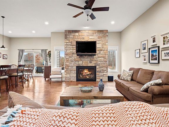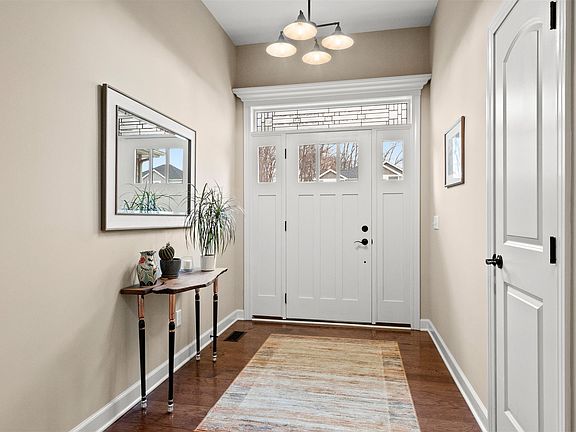 Craftsman style ranch on daylight lower level in beautiful Sorrento! 4 bedrooms, 3.5 baths, over 3700 square ft of finished living space. Upon entering the home you'll find an elegant entry way with hardwood floors and a beautiful door with an overhead transom window. The entry way leads into a large great room that is connected and completely open to the kitchen and dining area. The great room has a floor to ceiling stone fireplace. It also has 10 ft ceilings and hard wood floors. The kitchen includes a large granite breakfast bar, stainless steel appliances, gas range, lots of custom cabinets and granite counter tops. The master suite is spacious with a tray ceiling and a large walk in closet. There is a walk in tile shower with dual shower heads, dual vanity and space for a soaking tub. The two additional bedrooms are both nicely sized with large windows and closets. There is a full bath between the bedrooms as well as a guest half bath on the main level. The laundry room is large with tons of extra cabinet space. The lower level includes a large family room, rec room with a large bar/kitchenette a 4th bedroom and a 3rd full bathroom. There is also a theatre room and the theatre system is included so you can watch a movie on your first night in your new home! There is also an unfinished area with good storage. The yard backs up to a wooded common area for nice privacy, has access to the walking path AND has a newer deck and patio. Plenty of space for enjoying the yard. There is also a 3 car garage, security cameras and much more! This home is only 4 years old and in perfect condition. Sorrento is near the Pufferbelly Trail, Parkview, Dupont YMCA, great access to I69 and lots of shopping options.