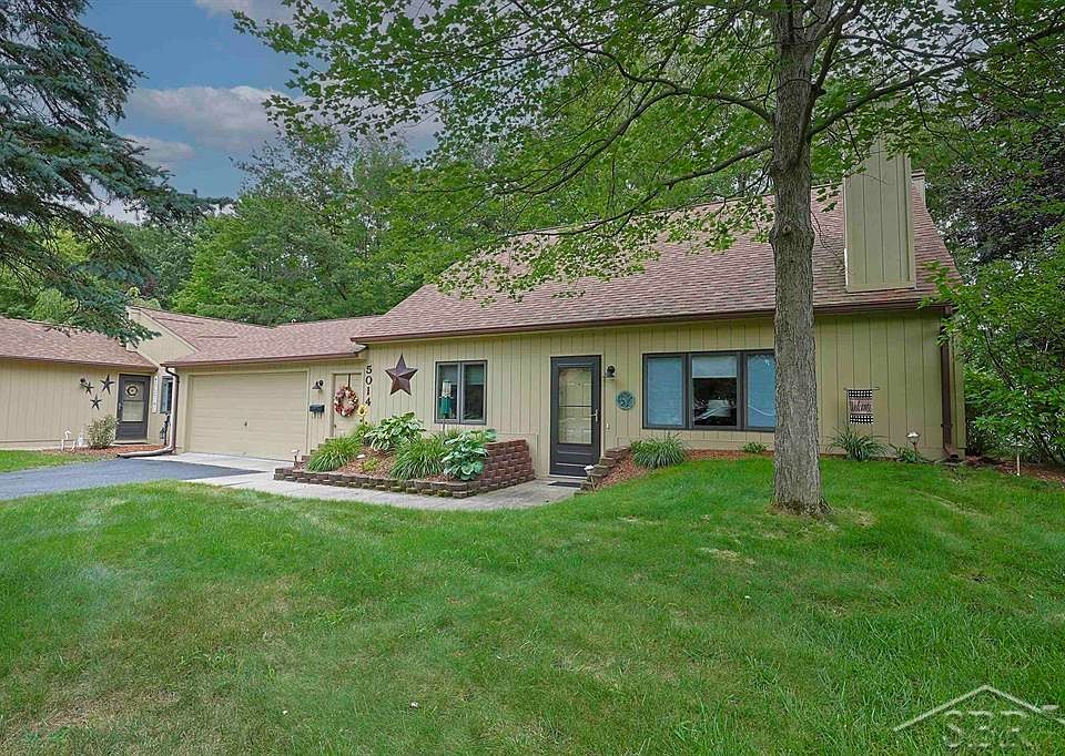 Ready to Move into Condo on Raintree! Welcome to 5014 Raintree, a beautifully maintained and updated 3-bedroom, 2-bathroom condo offering 1,550 square feet of comfortable, low-maintenance living. Perfectly designed for convenience and style, this home features a bright and open layout with vaulted ceilings and a cozy gas fireplace in the living room. The main floor boasts stunning wood flooring, a bedroom or flexible office space, and convenient main-floor laundry. The kitchen and bathrooms have been thoughtfully updated, blending modern finishes with timeless appeal. Upstairs, wood flooring continues, and you'll find 2 additional bedrooms with double closets, a full bath with skylight and landing space providing privacy and flexibility. Step outside to enjoy your own private patio. The 2.5-car finished garage offers ample storage. Located in a quiet, desirable community, this condo is just a short walk to the Rail Trail, making it easy to enjoy Midland's natural beauty. With low-maintenance and energy efficient living, 5014 Raintree is the perfect place to call home.