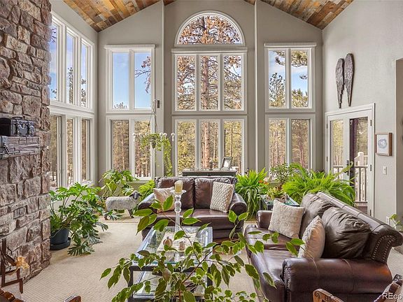 - Description: With Natural Stone Fireplace, Vaulted Ceilings, Expansive Windows Overlooking Soaring Pines