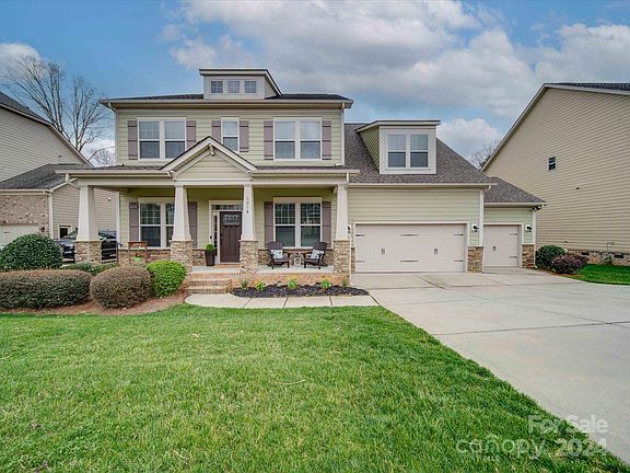 Indulge in luxury living within this suburban 5 bedroom, 4.5 bathroom haven. Immerse yourself in the warmth of real hardwood floors & the freshness of new paint. Come home to fiber cement siding, stone veneer accents, Architectural roof, wide covered porch and spacious 3 car attached garage. Imagine this- Open layout, 10' ceilings, mudroom with storagebench, guest suite on main, dedicated office space with french doors and hidden closet, flex bonus room, This home allows chefs to mingle with guests at the oversized island with seating and storage. Kitchen boasts granite c'tops, SS appliances, gas range, and walk in pantry. Upstairs- relax in your oversized primary suite with trey ceiling and fan, 3 additional bedrooms each with access to a private bathroom and flex space/loft area. Insulated attic. The fully fenced in backyard holds a covered porch with fan, built in firepit, play area and a meandering stream just beyond the fence. Community has 2 pools, playground and soccer field